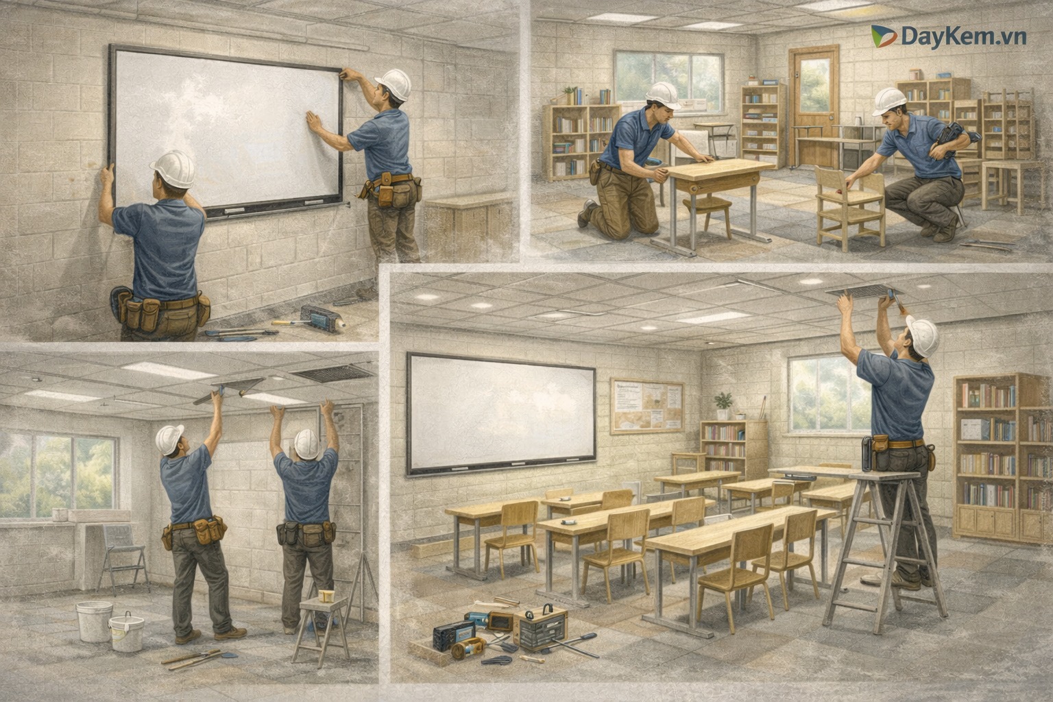 - Hoàn thiện tường, trần, sàn phù hợp môi trường học